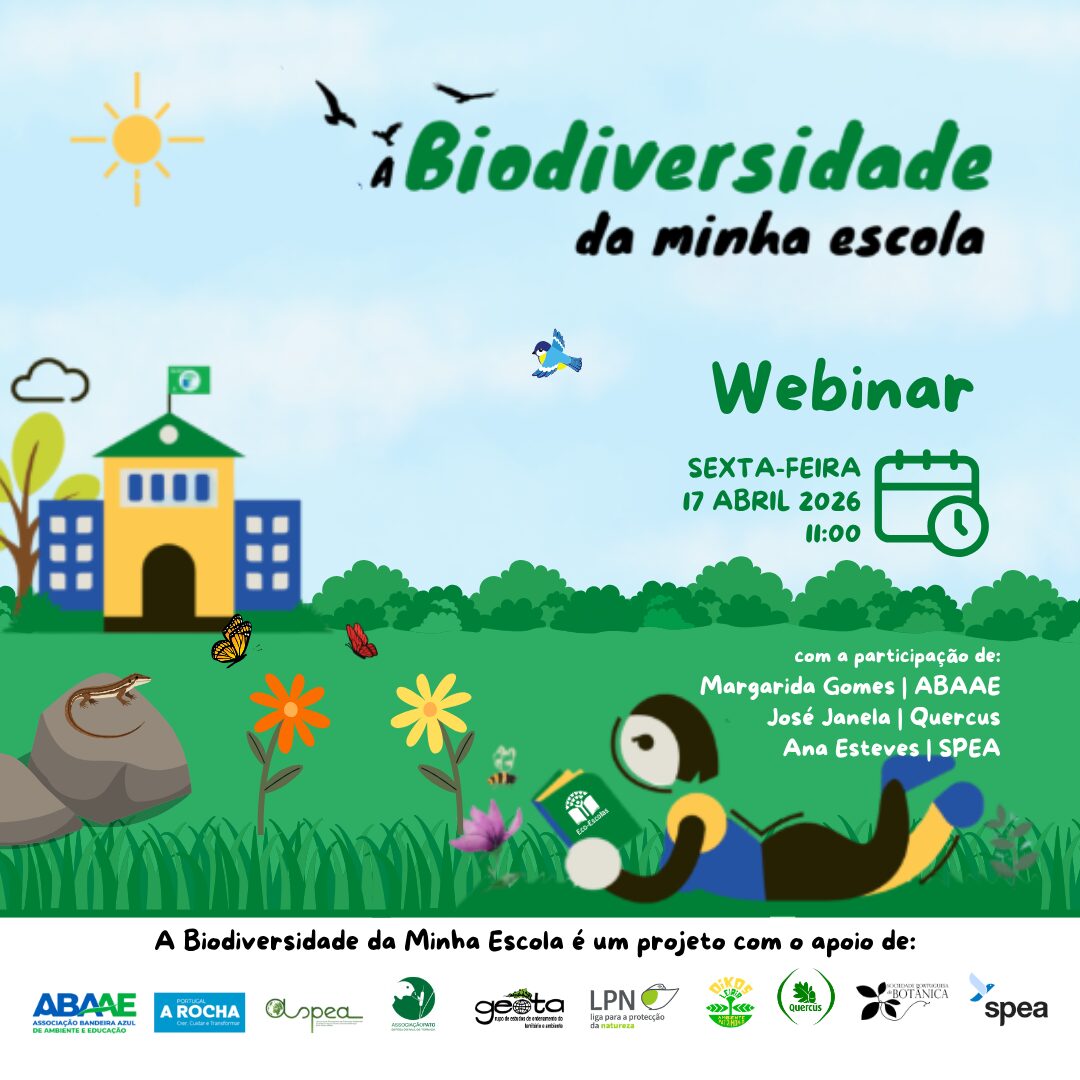 No âmbito do projeto “A Biodiversidade da Minha Escola”, decorrerá no dia 17 de abril de 2026, um webinar com o mesmo nome, na plataforma zoom, entre as 11h00 e as 12h00, seguido de um período adicional para esclarecimento de dúvidas até às 12h30.